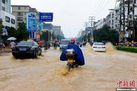 8月17日发稿时止,受强台风“尤特”影响,广东怀集遭遇50年一遇特大洪水,该县三防办指挥部表示,从8月15日8时到17日13时,该县41个雨量站分别录得降雨量100mm以上,其中最大的是冷坑三坑水库站410mm,17日13时该县三坑水库、湖朗水库、下竹水库等超防限水位,在17日11时水位已达到为53.29米,超警戒水位3.29米,暂无接到人员伤亡报告。据初步统计,该县因灾造成直接经济损失1234.36万元, 全县农作物受灾面积3.57万亩, 水产养殖面积503亩,受浸房屋232间,房屋倒塌46间(土木结构),道路塌方4处,山体滑坡1处20米,冲坏灌溉渠道676米。目前,该怀集县城绥江水位正在逐渐消退中。图为受灾县城。中新社发 黄耀辉 摄