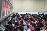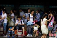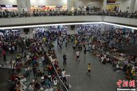 受近日粤北地区持续强降雨影响,8月17日 19:58分许,京广线张滩至土岭区间再次发生边坡溜坍、山体跨塌和泥石流。京广线上下行线中断行车,广州火车站所有列车停运。至18日凌晨,已有上万名旅客滞留广州火车站。中新社发 陈启任 摄