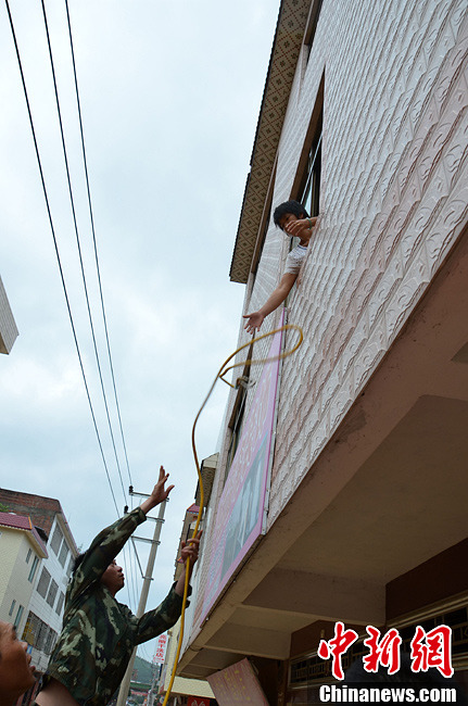8月18日,备受关注的广东封开贺江水位仍在上涨,该县三防办通报数据显示,境内贺江河水未减退,到记者中午发稿时止,11时录得南丰城区水位39.72米,较前一小时上涨0.03米,全县受灾人口18000多人,从17日晚至18日上午,50多名应急分队员出动轻舟40多舟次,再次紧急转移南丰镇城区受困人员120多次,转移物资10多吨。据不完全统计,目前该县已紧急转移6700多人,全县转移物资总数仍在统计之中,该县社会秩序稳定。图为应急分队的队员在援救被困人员。黄耀辉 摄