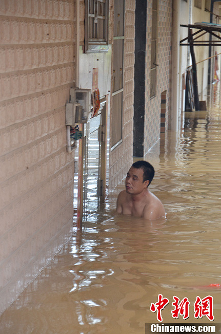 8月18日,备受关注的广东封开贺江水位仍在上涨,该县三防办通报数据显示,境内贺江河水未减退,到记者中午发稿时止,11时录得南丰城区水位39.72米,较前一小时上涨0.03米,全县受灾人口18000多人,从17日晚至18日上午,50多名应急分队员出动轻舟40多舟次,再次紧急转移南丰镇城区受困人员120多次,转移物资10多吨。据不完全统计,目前该县已紧急转移6700多人,全县转移物资总数仍在统计之中,该县社会秩序稳定。图为来自广东佛山的应急分队员在城区下水开门援救楼上的4岁病童。黄耀辉 摄