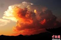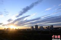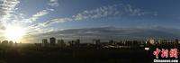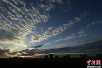 8月18日清晨5时,“火烧云”映红了北京天空,秋风扫去阴霾与湿闷的天气,带来秋高气爽的黄金季节。中新社发 任晨鸣 摄