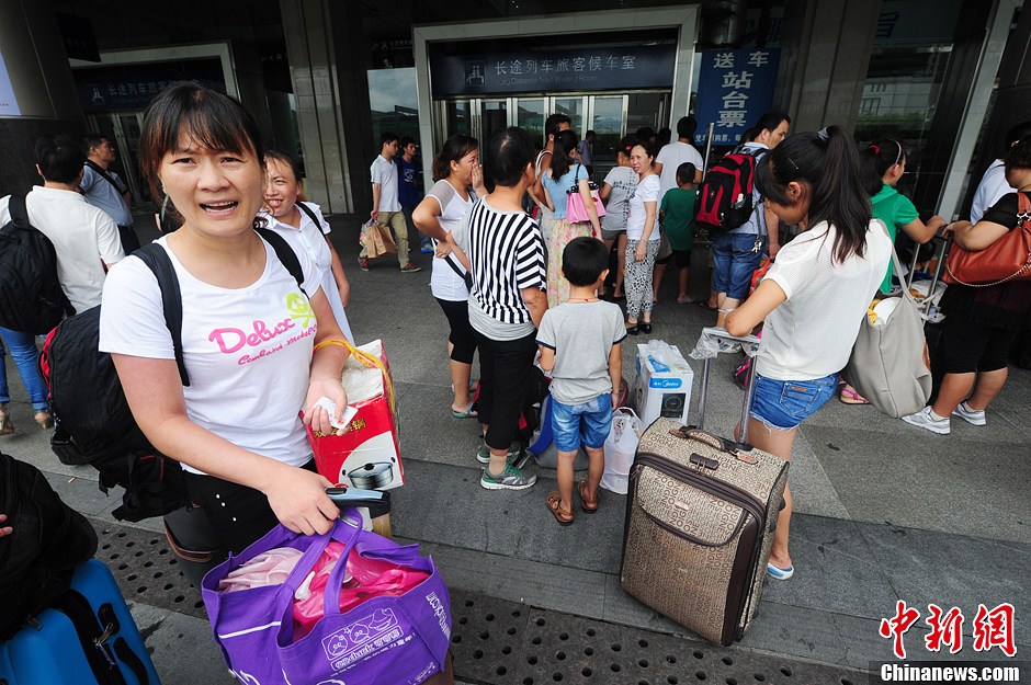 8月18日,广东大部地区受持续强降雨影响,导致京广方向列车停运。由深圳火车站开出的K9204次、Z24次、T96 次等列车停运,给前往岳阳、宜昌、汉口、烟台、常德、桂林等方向出行的旅客带来不便。购买了停开列车车次的旅客,可在票面日期5日之内到火车站退票窗口办理退票手续。中新社发 陈文 摄