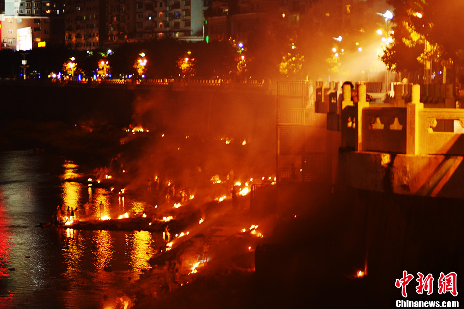 8月18日晚,农历七月十五——“七月半”前夕。四川达州民众陆陆续续到州河边烧纸钱,以祭奠先祖、缅怀先人。每年此时,达州城区州河沿江燃烧祭祀物品的火光、呛人的烟雾弥漫着整个城市。张骥 摄