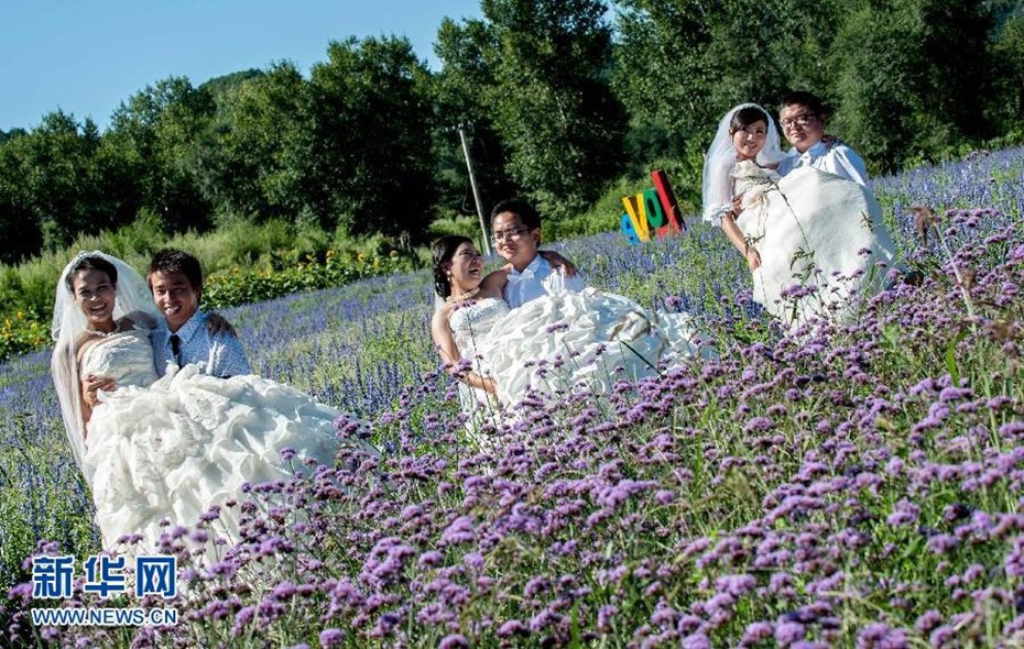 8月18日,新郎抱着新娘在花丛中穿过。当日,16对新人齐聚北京市延庆县美丽的珍珠泉畔,参加以“缘定延庆珍珠山水,情系京郊魅力舞台”为主题的大学生村官集体婚礼。16对新人当中,有21人是现任或是期满卸任的大学生村官。他们从五湖四海会聚在京郊农村,在基层岗位上相识相爱。新华社发 张宇 摄 图片来源:新华网