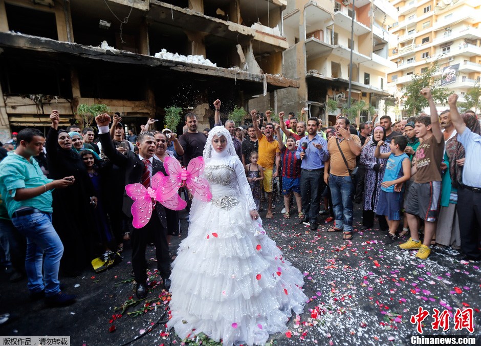 黎巴嫩情侣爆炸现场举行婚礼
