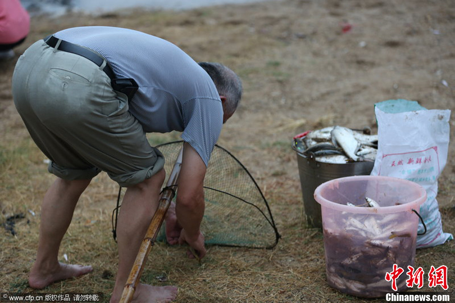 8月20日,湖南株洲白石港、湘潭马家河、湘潭二大桥下陆续发现死鱼,在发现死鱼的株洲、湘潭等地,沿岸居民获知消息纷纷前往死鱼地点捞鱼。彭健江 摄 图片来源:CFP视觉中国