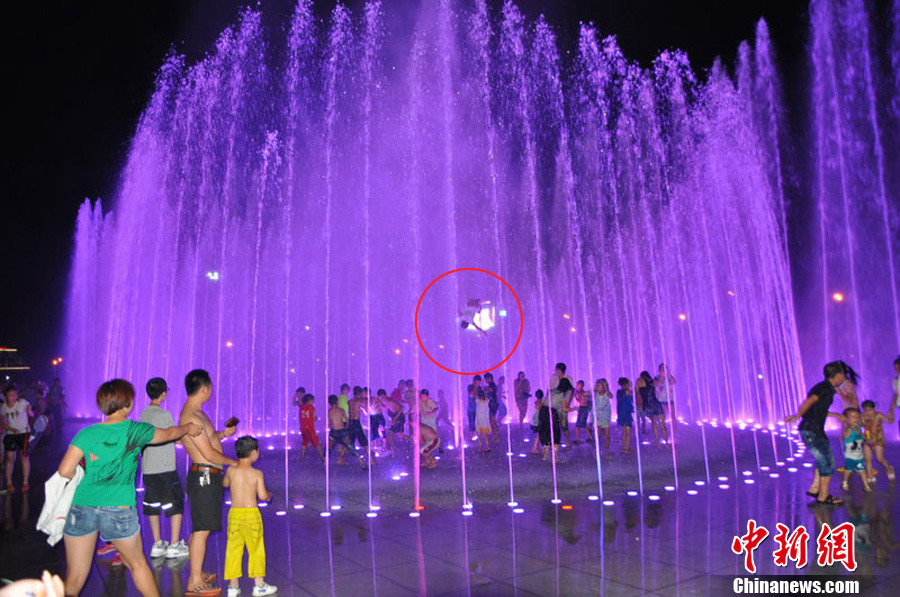 湖北恩施一男孩被广场喷泉冲上空中
