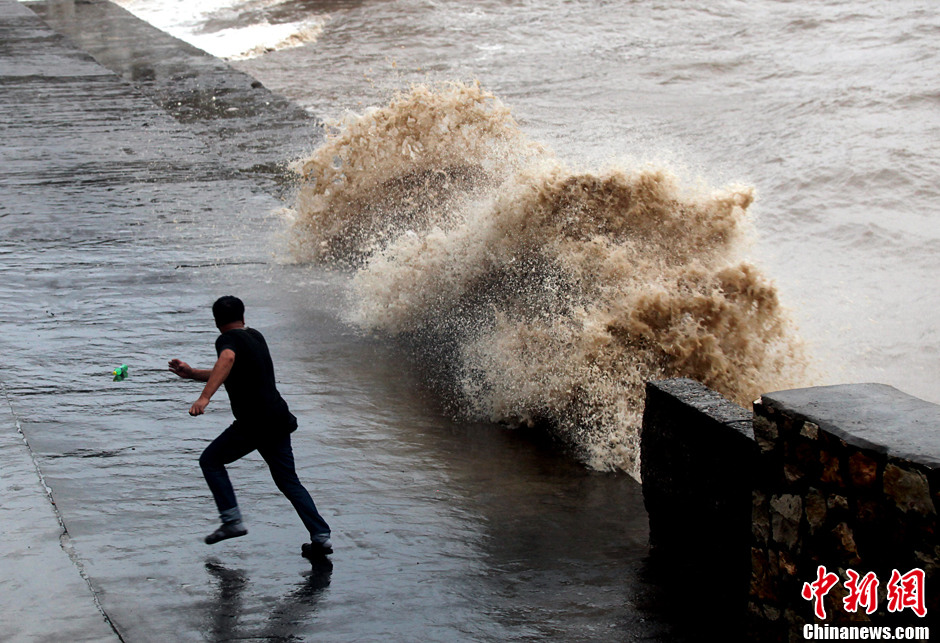 8月21日,台风“潭美”影响浙江台州温岭掀大浪。当天,台州市气象台发布台风紧急警报,台州市防汛指挥部随即将防台风应急响应提升为Ⅱ级,全力防御今年第12号台风“潭美”造成损失。中新社发 孙金标 摄