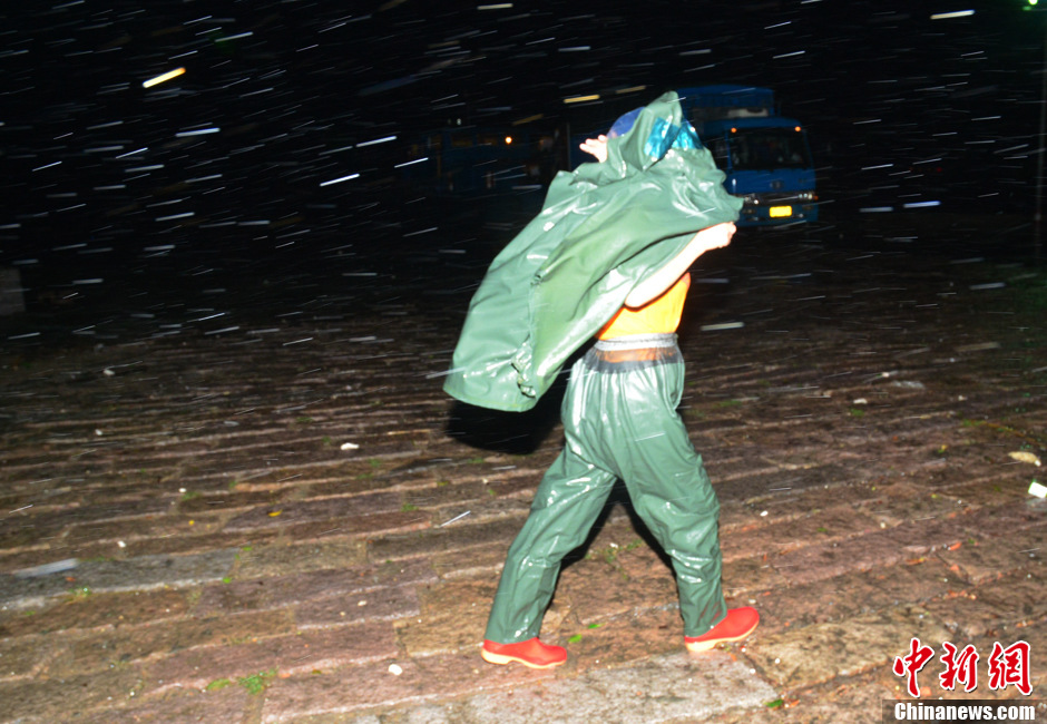 8月22日凌晨,福建宁德市民在风雨中艰难出行。受台风“潭美”影响,当日1时26分福建省气象台继续发布台风红色信号,福建宁德、福州、莆田、泉州、三明、龙岩六市的部分将有暴雨或大暴雨,局部特大暴雨。中新社发 张斌 摄
