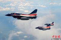 当地时间8月21日,歼-10表演机编队飞翔在俄罗斯上空。当日,中国空军7架歼-10表演机飞抵莫斯科市郊的拉缅斯科耶机场。组建51年来首次飞出国门的中国空军八一飞行表演队,应俄罗斯空军邀请前来参加第十一届莫斯科航展。中新社发 申进科 摄
