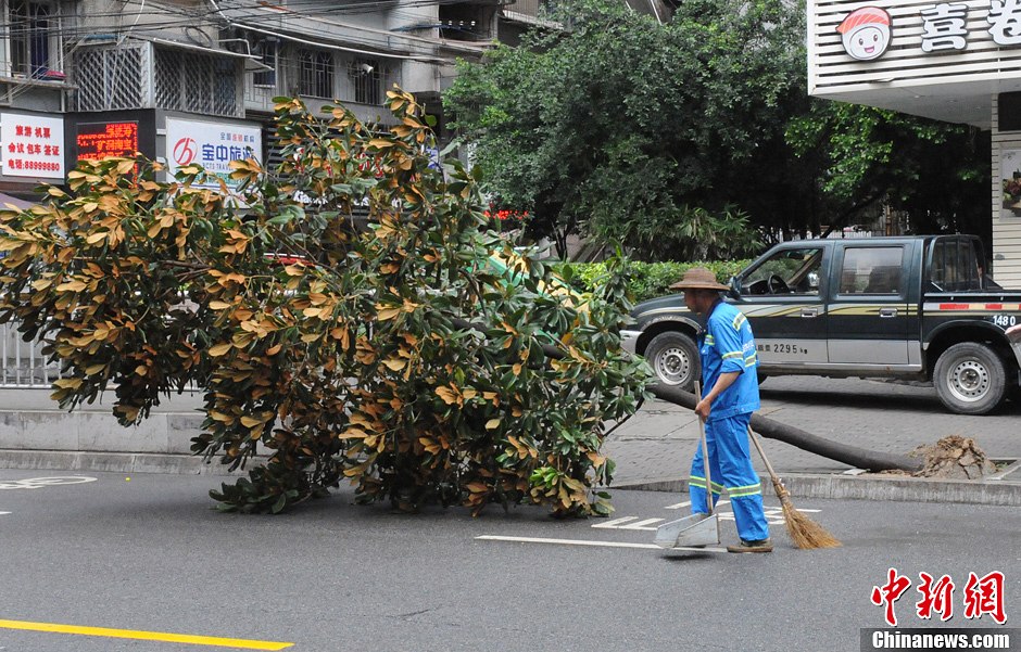 台风“潭美”袭福州 市区行道树被连根拔起