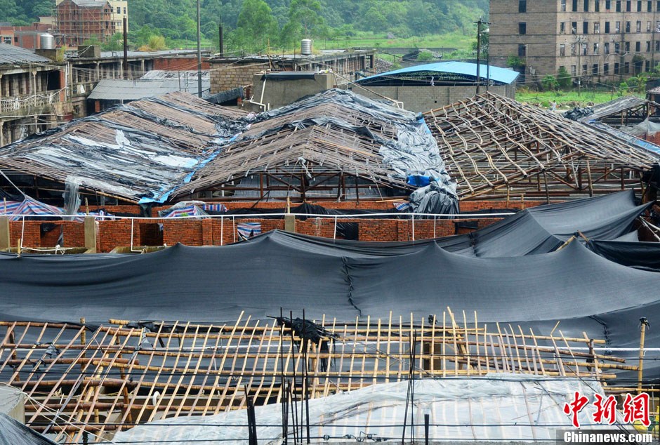 8月22日,福建宁德三都澳家溪村一家海产品养殖户近千平方米的厂房被台风“潭美”带来的大风吹毁,损失惨重。当日凌晨,今年第12号台风“潭美”在福建登陆,登陆时,恰逢天文大潮期,风、雨、潮三碰头,对福建沿海地区产生了严重影响。张斌 摄