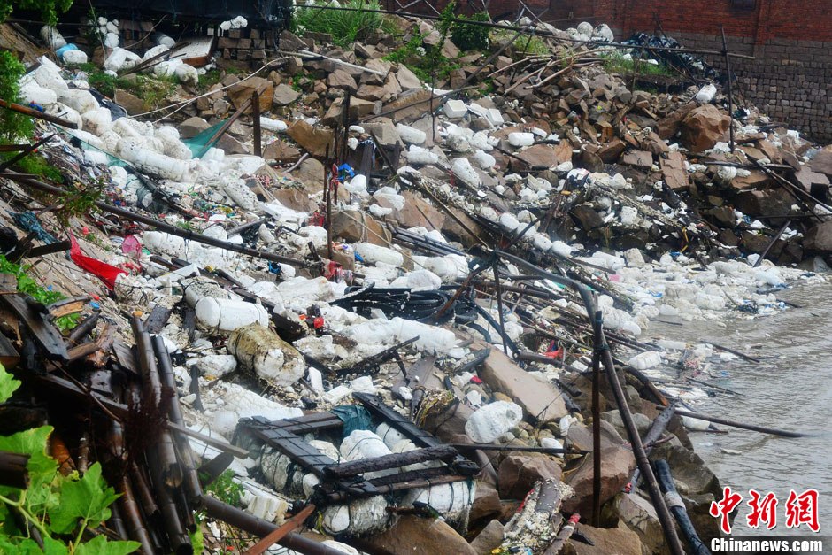 “潭美”过后 福建宁德三都澳海岸白色垃圾成堆