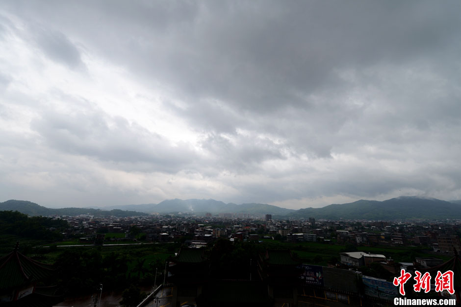 8月22日凌晨,台风“潭美”登陆福建福清,受其影响,福建南安洪濑镇上空乌云压顶。中新社发 王东明 摄