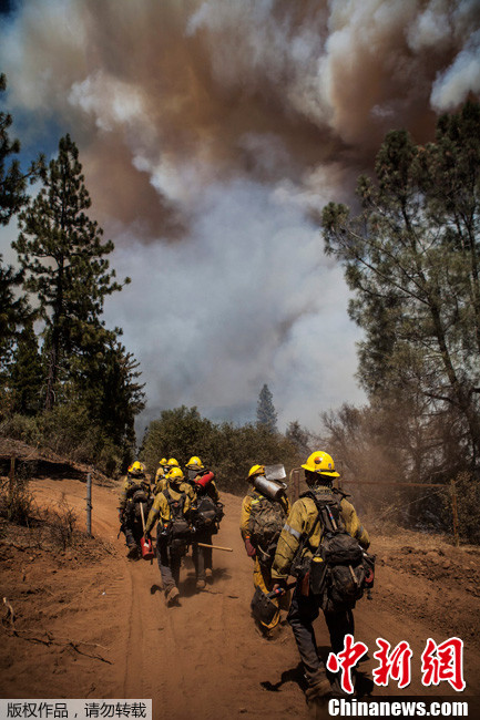 当地时间2013年8月22日,美国加州,约塞米特蒂国家公园附近山火肆虐。据当地官方称,大火烧毁了超过2万公顷的森林。