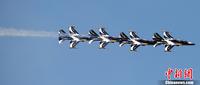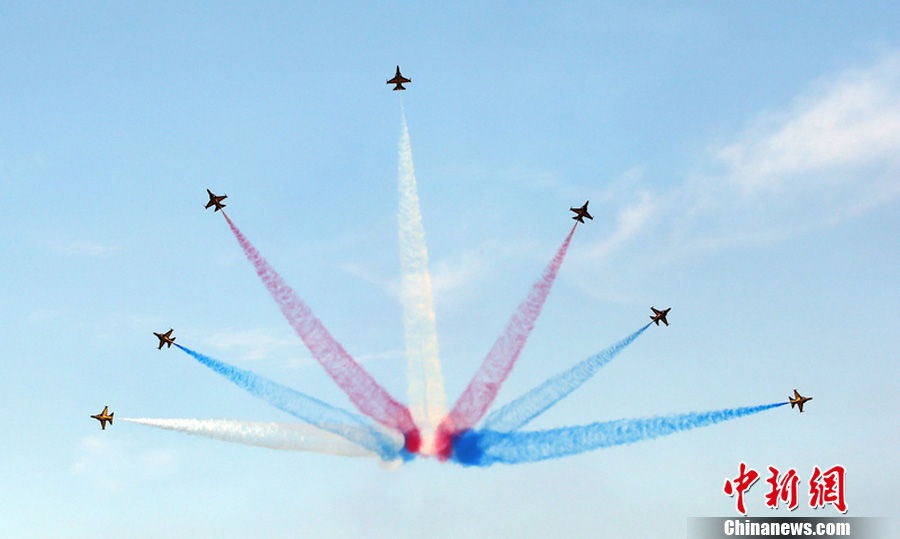当地时间2013年8月24日,韩国忠州,空军黑鹰举行航空展,在蓝蓝的天空映衬下,显得特别炫目。图片来源:东方IC 版权作品 请勿转载