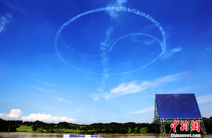 当地时间2013年8月24日,韩国忠州,空军黑鹰举行航空展,在蓝蓝的天空映衬下,显得特别炫目。图片来源:东方IC 版权作品 请勿转载