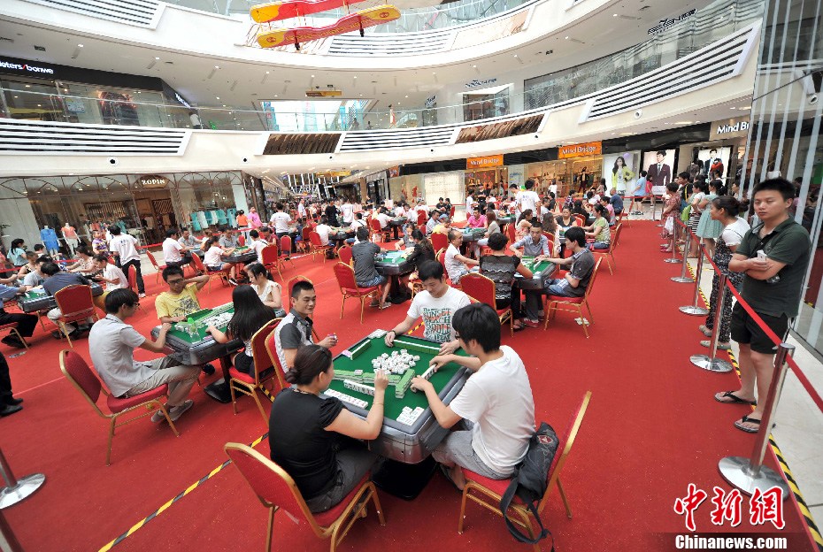 8月24日,武汉一商家举办“挑战吉尼斯 万人麻将挑战赛”,该比赛分为业余组积分赛和专业组选拔赛。中新社发 张畅 摄