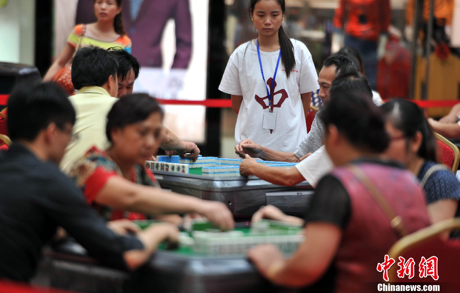 8月24日,武汉一商家举办“挑战吉尼斯 万人麻将挑战赛”,该比赛分为业余组积分赛和专业组选拔赛。中新社发 张畅 摄