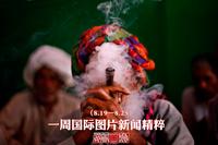8月22日,新德里举行了一场要求向贫穷的老年市民支付养老金的集会,图为一名村民在集会上抽烟。