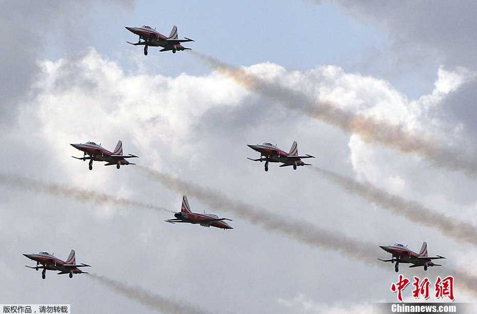 当地时间2013年8月24日,波兰拉多姆,国际航展开幕,精彩飞行表演令人目眩。