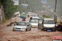 云南彝良普降暴雨引发山洪泥石流 车辆陷淤泥