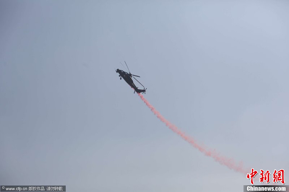 8月25日,北京,中国第一支直升机飞行表演队——陆航飞行表演队进行训练。据悉,陆航飞行表演队将亮相第二届中国天津国际直升机博览会。第二届中国天津国际直升机博览会将于9月5日至8日在天津滨海新区空港经济区举行。指月 摄 图片来源:CFP视觉中国
