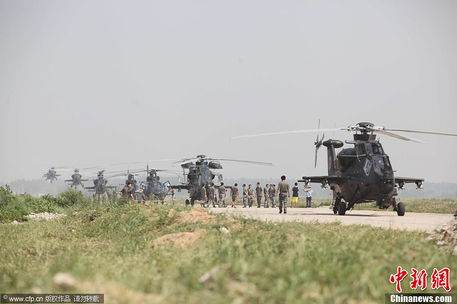 8月25日,北京,中国第一支直升机飞行表演队——陆航飞行表演队进行训练。据悉,陆航飞行表演队将亮相第二届中国天津国际直升机博览会。第二届中国天津国际直升机博览会将于9月5日至8日在天津滨海新区空港经济区举行。指月 摄 图片来源:CFP视觉中国