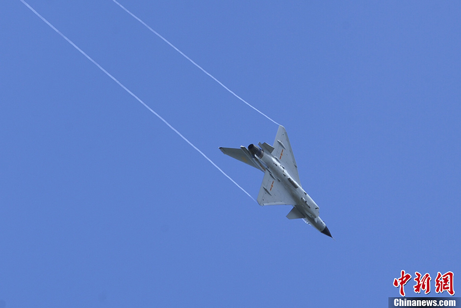 8月26日,空军航空大学开学典礼暨吉林长春第三届航空节在长春大房身机场拉开帷幕,来自一线作战部队的歼-10战斗机进行了精彩的单机特技飞行表演。图为来自一线作战部队的歼-10战斗机进行特技飞行表演。吴兆飞 摄