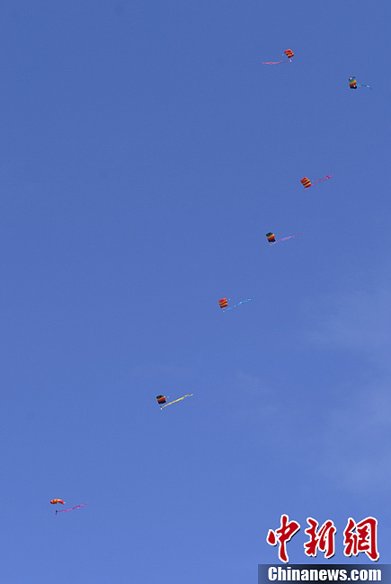 8月26日,空军航空大学开学典礼暨吉林长春第三届航空节在长春大房身机场拉开帷幕。空军跳伞运动大队和空军航空大学“蓝鹰”跳伞表演队先后展示了“蓝天先锋”、“金龙飞舞”、“仙女下凡”等跳伞节目。张瑶 摄