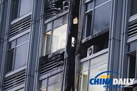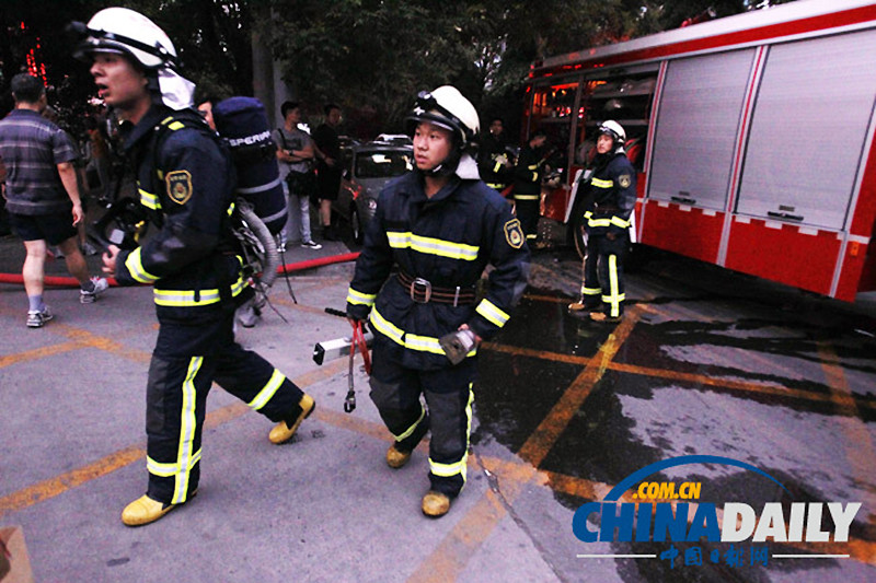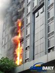 8月26日,18时35分左右,北京朝阳区惠新西街21号武警交通指挥部大楼发生空调爆炸引发火灾。图为火灾现场。据目击者称,火焰是从北京朝阳区惠新西街21号武警交通指挥部大楼2、3层的空调室外机处开始着火,30秒之内火势迅速蔓延至7楼。楼内有人用干式灭火器进行灭火,但火势蔓延迅速,目前暂无人员伤亡信息。路上行人纷纷拨打119火警,5分钟之内四辆消防车赶到。据现场信息,截止18时45分,大火已被扑灭。图片来源:中国日报网