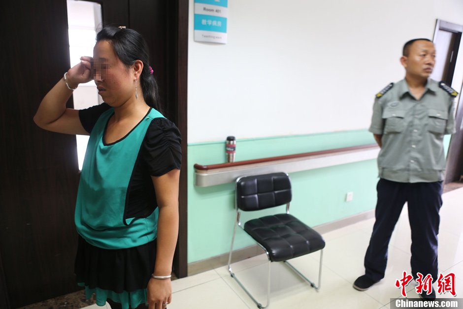 8月27日,山西6岁男童被骗挖去双眼一事成为舆论焦点,男童入住的山西省眼科医院四楼病房门口有医院保安把守,医护人员和家属不停穿梭其中。据医院办公室主任杨彩珍介绍,目前,经过院方全力抢救,男童已无生命危险,但基本确定已经失明,下一次具体的手术时间还未确定。当日中午,山西省临汾市公安局表示要全力侦破该案件,尽快将犯罪嫌疑人绳之以法。据男孩父母介绍,8月24日晚上10时许,在离家不远的野地里发现满脸鲜血、眼珠已被挖去的小男孩,但眼角膜已不见。当地警方已在事发现场找到男孩的眼珠。据孩子自己描述,嫌疑人疑似一名操外地口音妇女。图为男童母亲泣不成声。张云 摄