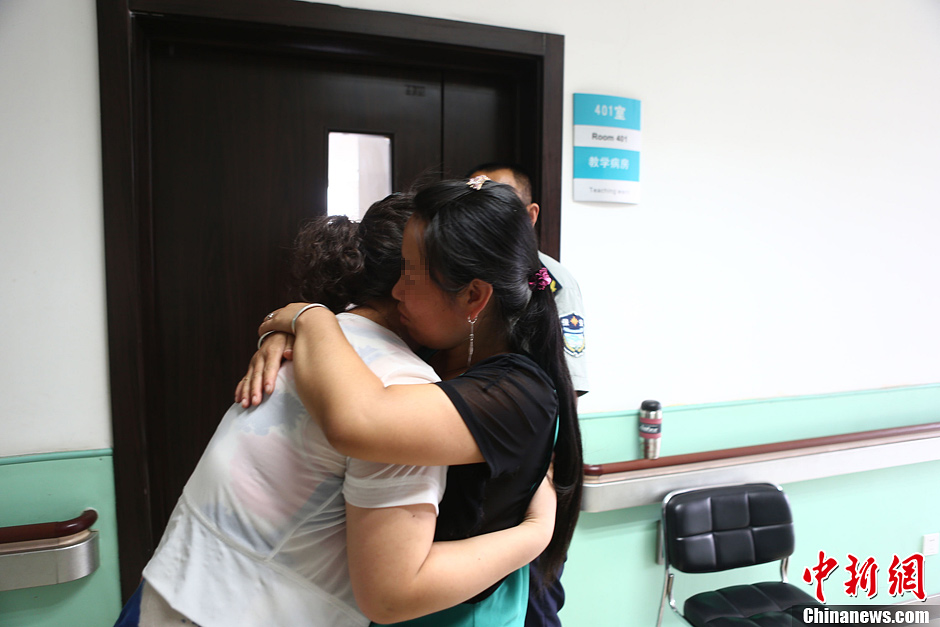 8月27日,山西6岁男童被骗挖去双眼一事成为舆论焦点,男童入住的山西省眼科医院四楼病房门口有医院保安把守,医护人员和家属不停穿梭其中。据医院办公室主任杨彩珍介绍,目前,经过院方全力抢救,男童已无生命危险,但基本确定已经失明,下一次具体的手术时间还未确定。当日中午,山西省临汾市公安局表示要全力侦破该案件,尽快将犯罪嫌疑人绳之以法。据男孩父母介绍,8月24日晚上10时许,在离家不远的野地里发现满脸鲜血、眼珠已被挖去的小男孩,但眼角膜已不见。当地警方已在事发现场找到男孩的眼珠。据孩子自己描述,嫌疑人疑似一名操外地口音妇女。图为男童母亲与亲属告别。张云 摄