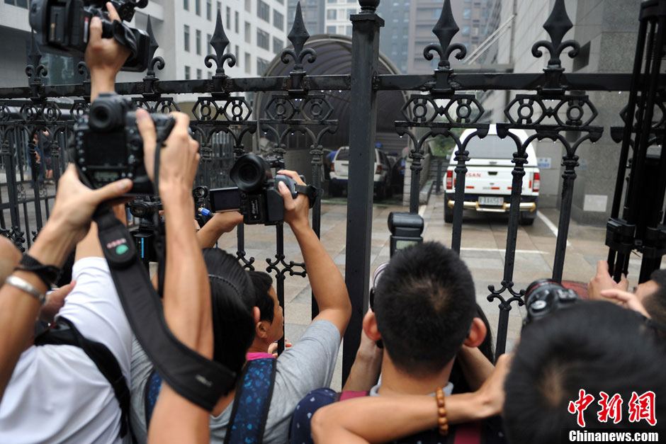 8月28日上午,李某某等人涉嫌强奸案在北京海淀法院开庭。大批媒体赶到海淀法院“蹲守”,同时,大量民警在法院外维持秩序,李某某乘坐的车辆在警察的包围下迅速开进法院。中新网记者 金硕 摄