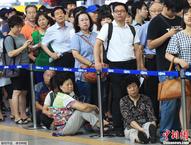 当地时间2013年8月28日,韩国首尔,火车站开始预售中秋节期间的火车票,前来购票的人排成了长龙。