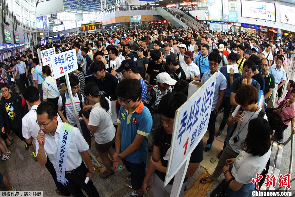 韩国中秋节火车票开售 车站人山人海场面火爆