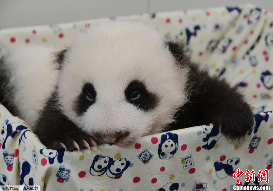 台北市立动物园公布的照片,“圆仔”尚未满两个月,目前体重已突破3千克,双眼全开,长势喜人。