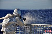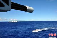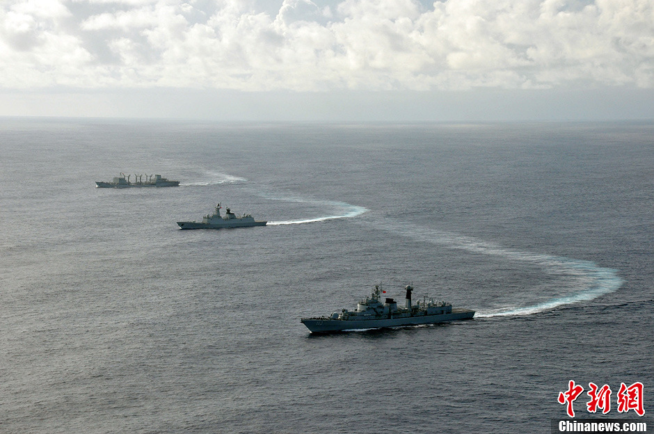 当地时间8月28日15时,中国海军舰艇编队在太平洋上进行了一场海上搜救遇险船只和救援受伤船员的演练。图为航行在太平洋上的我海军出访美澳新三国舰艇编队。中新社发 胡善敏 摄 图片来源:CNSPHOTO