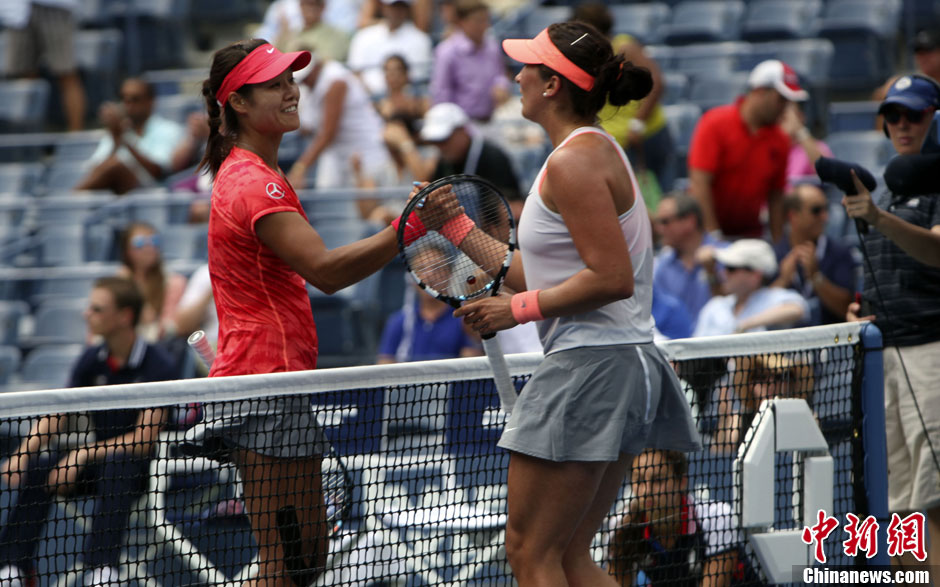 当地时间8月28日,2013年美网女单5号种子、中国选手李娜以两个6:2横扫瑞典选手阿维德森,强势闯进美网第三轮。据悉,这是李娜职业生涯第5次打进美网第三轮,下一个对手将是去年同轮次将自己淘汰的英国90后小将罗布森和法国新星加西亚之间的胜者。中新社发 阮煜琳 摄