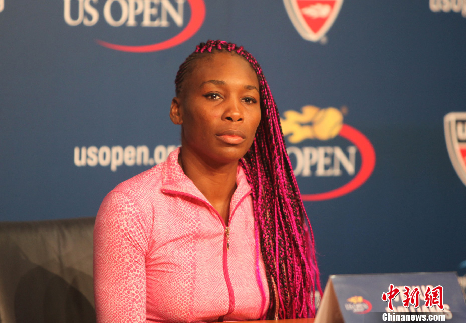 当地时间8月28日晚,美国名将大威廉姆斯不敌中国网球选手郑洁,止步美网第二轮比赛。图为大威廉姆斯在赛后的新闻发布会。中新社发 阮煜琳 摄