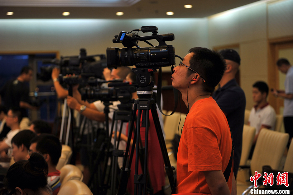 8月29日晚,李某某等5人涉嫌强奸一案庭审结束,北京海淀法院召开李某某案新闻通报会,向媒体披露庭审详情。中新网记者 金硕 摄