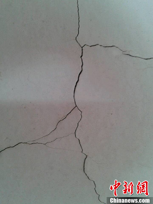 8月30日13时27分,新疆维吾尔自治区首府乌鲁木齐市发生5.1级地震,震源深度12千米,市区震感强烈。图为地震造成乌鲁木齐民众房屋墙上出现裂缝。网友供图