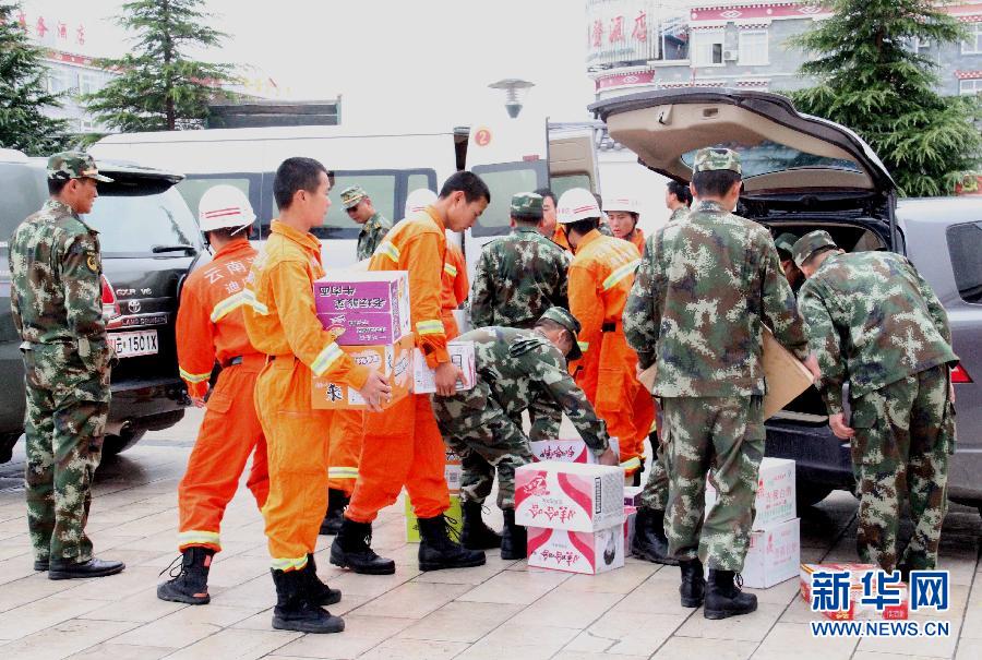 8月31日,云南省迪庆藏族自治州消防官兵紧急出动,驰援灾区。当日8时4分,在云南省迪庆藏族自治州香格里拉县、德钦县、四川省甘孜藏族自治州得荣县交界发生5.9级地震,震源深度10千米。截至9时18分,余震12次,最大震级4.4级。目前已造成1人遇难,3人重伤,17名游客被困。 图片来源:新华网