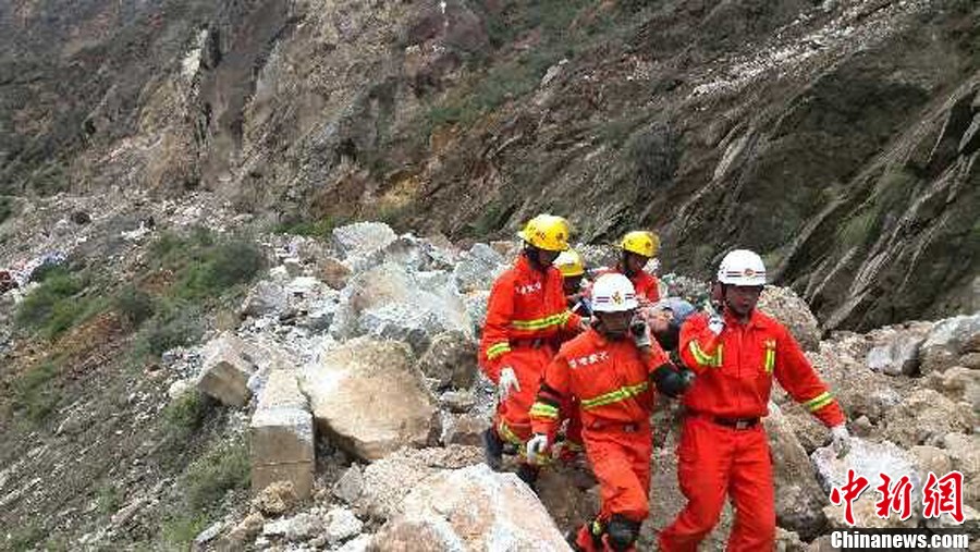 滇川交界5.9级地震致山体塌方 官兵营救被困者