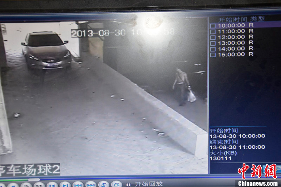 8月30日,湖南省邵阳市,图为监控录像,毒贩张某逃逸至地下车库。吴建波 摄 图片来源:CFP视觉中国