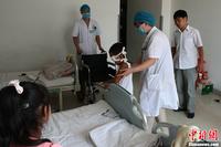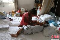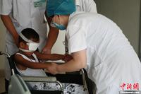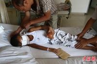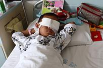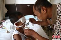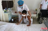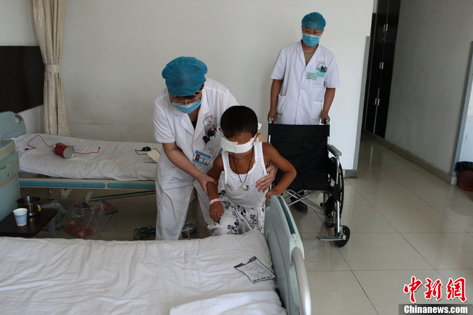 9月1日,在山西省眼科医院,被挖双眼男童换药完毕返回后,在病房中进行简单的行走复健。张云 摄