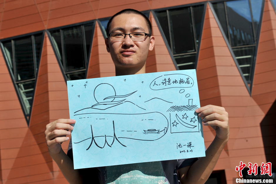 清华大学建筑学院建筑系大一新生沈一琛。来自上海松江区的他今年考了533分(上海满分600分),比上海状元低了6分。他认为当下一些建筑怪像,反应了当下国人的文化心态,缺乏自豪感与自信心,出现很多模仿,却没有体现中国传统文化中有价值的东西。他希望通过这四年时光,把建筑这门课学好。当谈及自己的梦想,沈一琛说:“我非常喜欢荷尔德林的一句诗,意思是‘人,诗意地栖居在大地上。’我希望通过自己的努力,将来在建筑方面能够创造一些永恒的东西,在这个大地上存在较长的时间,这种存在感与成就感非常打动我。”图/文 中新网记者 金硕