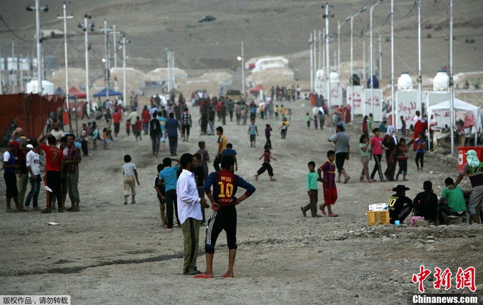 当地时间8月27日,伊拉克北部埃尔比勒附近的叙利亚库尔德人难民营。