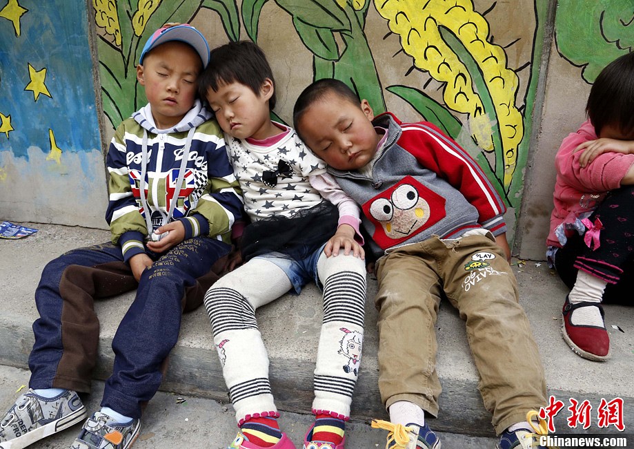 9月2日下午1点过,青海省湟中县海子沟乡王家庄幼教点的孩子们正在教室的墙根下午睡,由于没有专门的休息场所,孩子们在墙角摆出“高难度”的睡姿。老师们说,教室里阴暗潮湿,孩子午睡容易感冒,所以就在外面靠墙睡,天气好的情况下每次午睡在半小时以内。据湟中县教育局教育科分管学前教育的汪虎林介绍,目前湟中县共有68个幼教点,孩子们普遍没有午休的地方,王家庄幼教点的情况在该县“属于比较好的”。赵凛松 摄