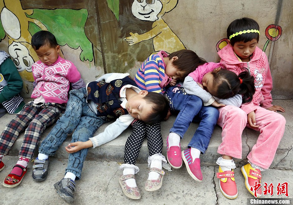 9月2日下午1点过,青海省湟中县海子沟乡王家庄幼教点的孩子们正在教室的墙根下午睡,由于没有专门的休息场所,孩子们在墙角摆出“高难度”的睡姿。老师们说,教室里阴暗潮湿,孩子午睡容易感冒,所以就在外面靠墙睡,天气好的情况下每次午睡在半小时以内。据湟中县教育局教育科分管学前教育的汪虎林介绍,目前湟中县共有68个幼教点,孩子们普遍没有午休的地方,王家庄幼教点的情况在该县“属于比较好的”。赵凛松 摄